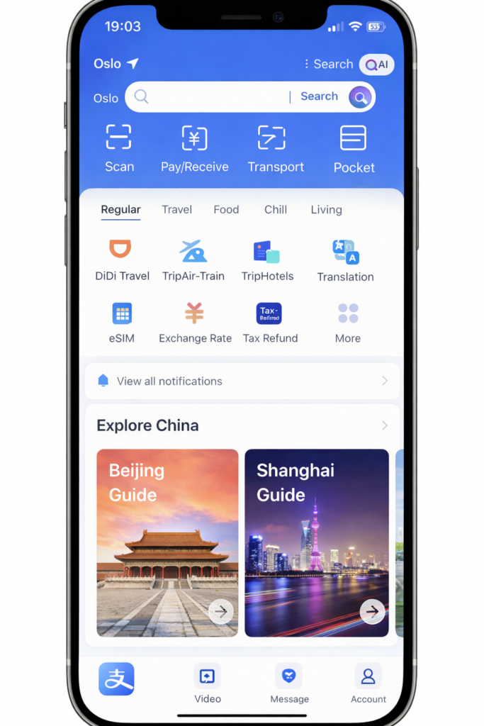 Med mobilen styrer kinesere hele det praktiske livet. I de overlappene appene AliPay og WeChat har du alt du trenger for å betale på butikken, kjøpe togbilletter, taxi og bestille DiDi, den kinesiske utgaven av Uber. Eller du kan bestille hotell og guidede turer. Her får du også underholdning med korte videoer som om det skulle vært TikTok eller Instagram.