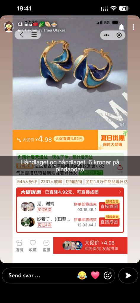 På Pinduoduo får du kjøpt «håndlagede» øredobber for 6 kroner. Er det mulig å lage noe med kvalitet så billig samtidig som arbeiderne skal sitte igjen med en lønn å leve av? Og hvilket materiale er disse øredobbene laget av?