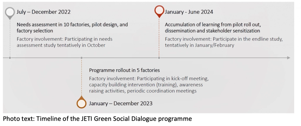 We are now inviting JETI textile members to nominate factories in Bangladesh to our new and unique programme, Green Social Dialogue. We are welcoming 10 garment factories to take part in the initial needs assessment for the programme, of which 5 will be selected for full programme implementation.